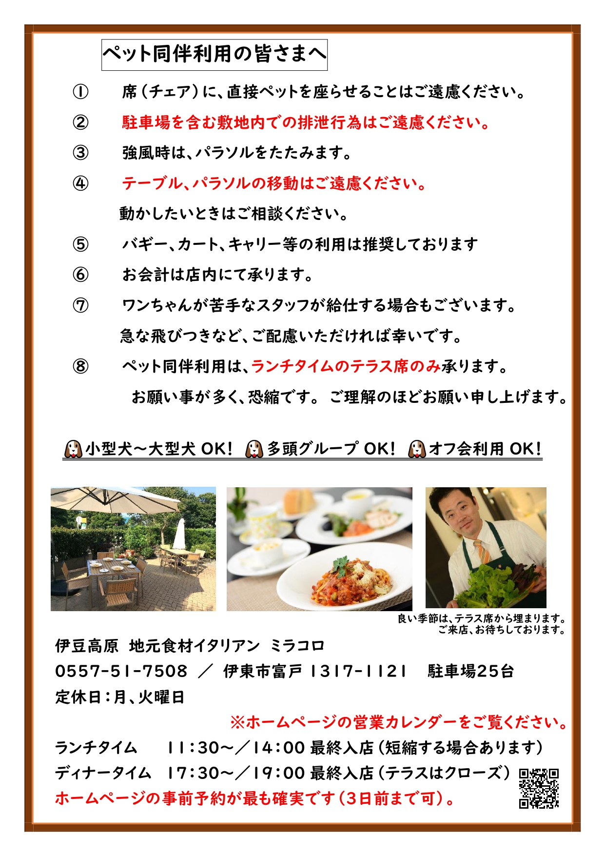 お知らせ « ウェディングパーティー/結婚... テレビ東京『タクシー運転手さ... » 2025年10月1日 お知らせ テラス席の利用は事前予約をおすすめします テラス席の利用ですが、暑さが落ち着いたため、通常通りの運用に戻しました。・ランチタイムのみ利用可能です・ペット同伴利用可能ですテラス席は2組しか使えませんご予約をおすすめいたします Tweet « ウェディングパーティー/結婚... テレビ東京『タクシー運転手さ... »