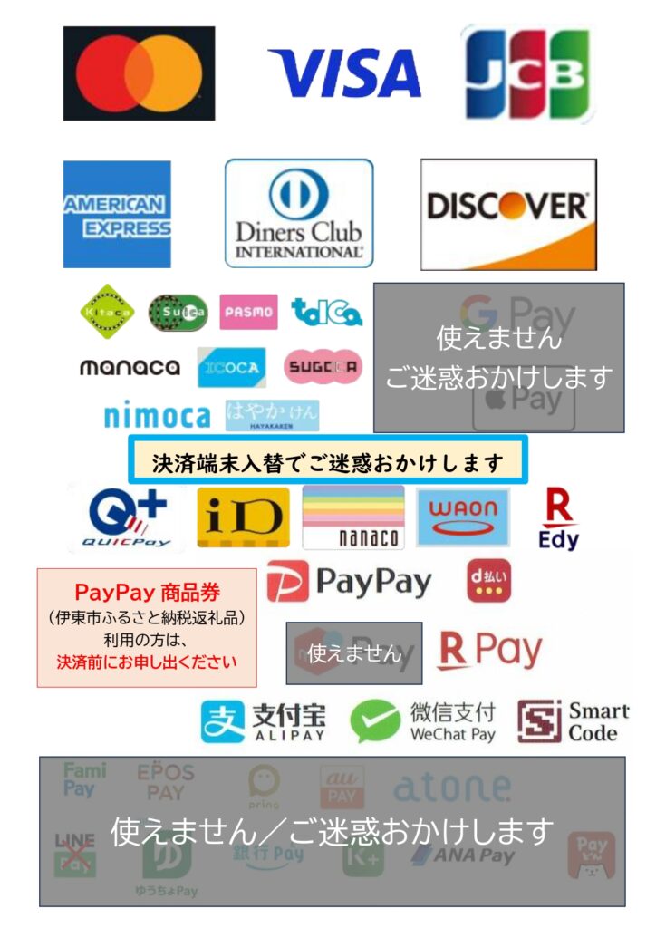 現在、決済端末入れ替えに伴い、利用できない決裁が生じております
