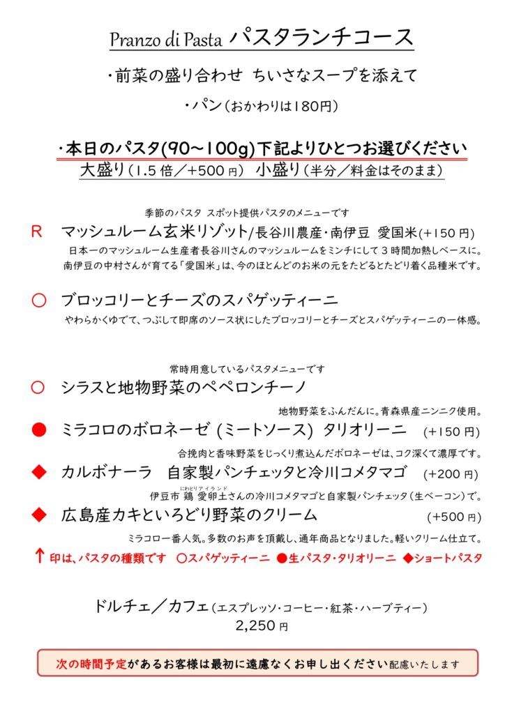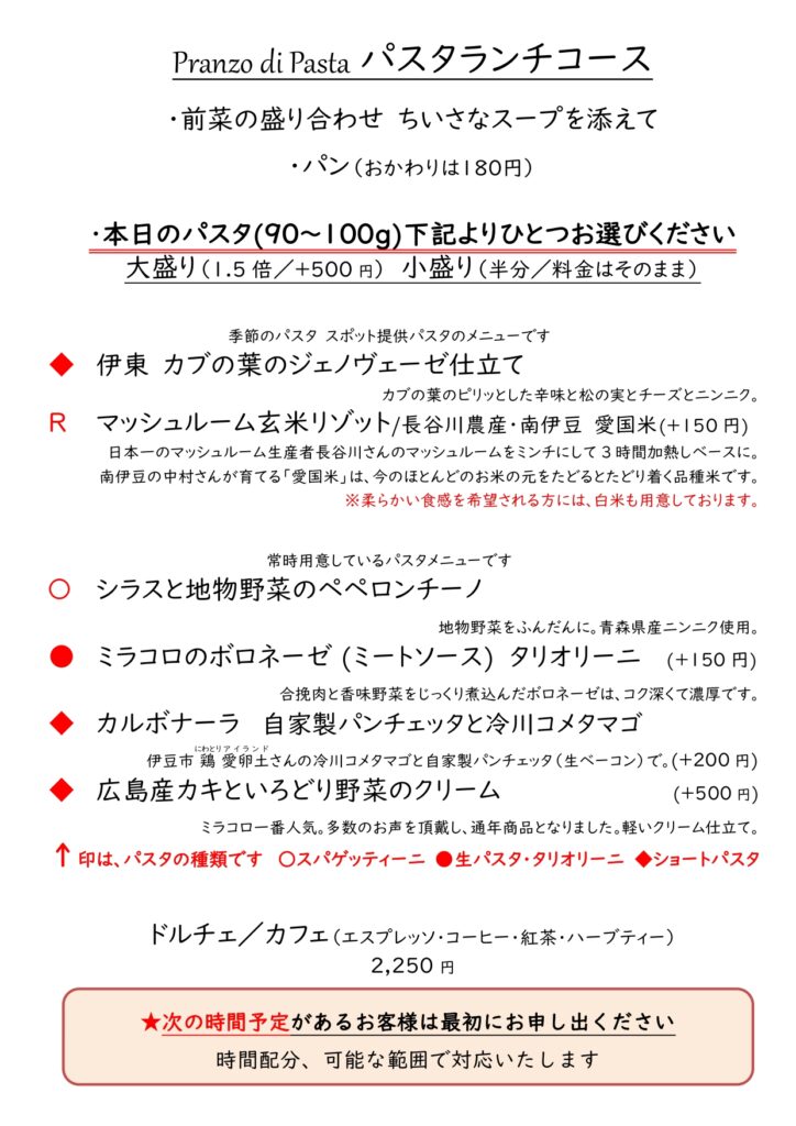 パスタランチコース