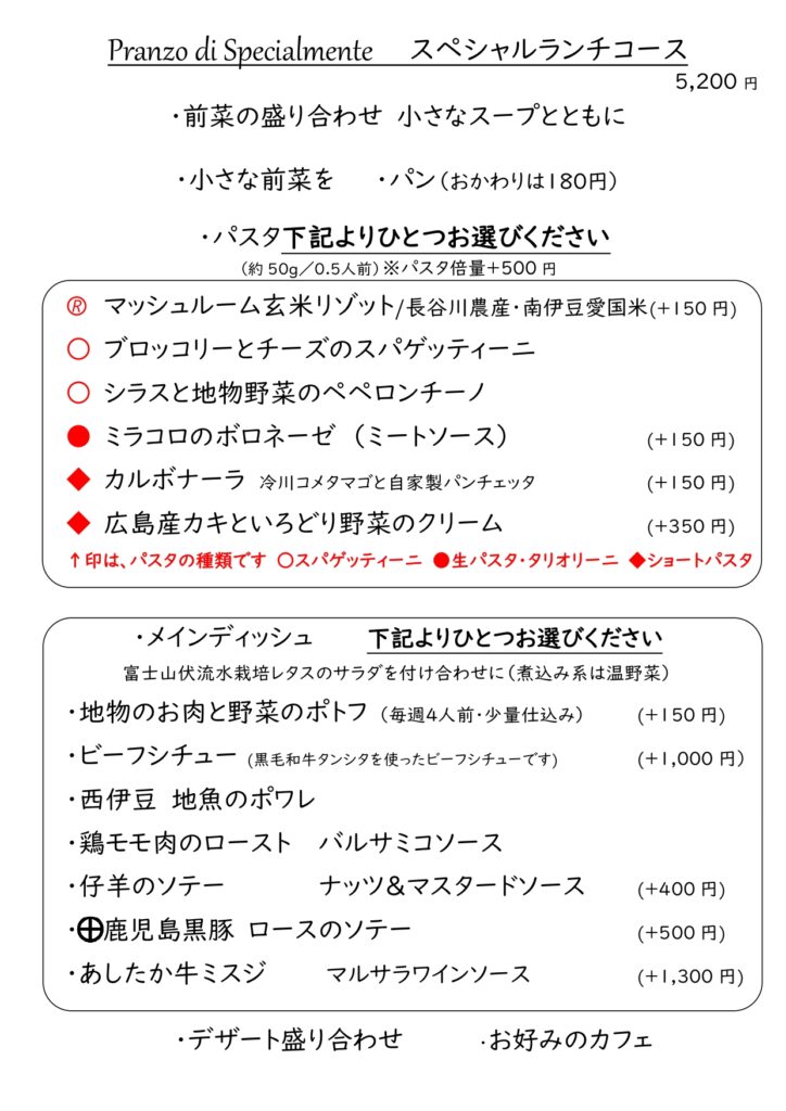 スペシャルランチコース